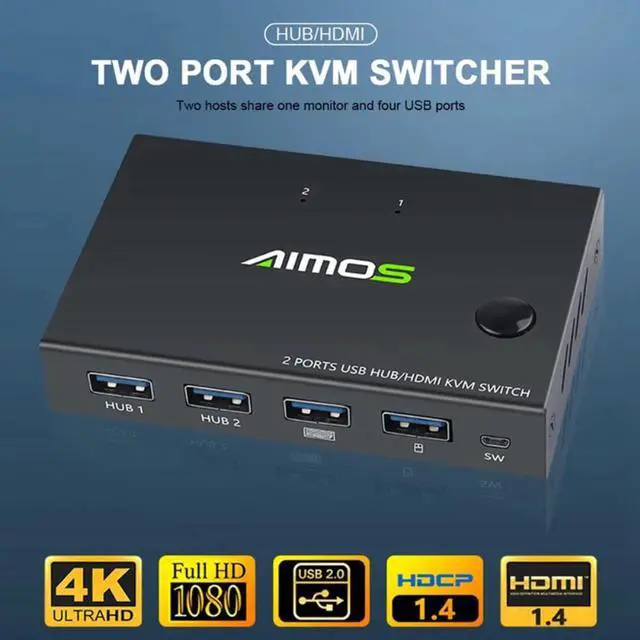 AIMOS 2 in 1 Out Splitter 4K USB HDMI KVM Switch for 2 PC Sharing Keyboard Mouse Printer Plug and Play Video Display