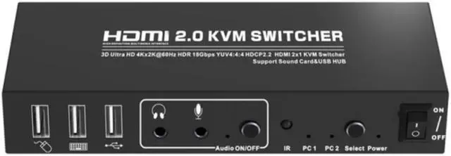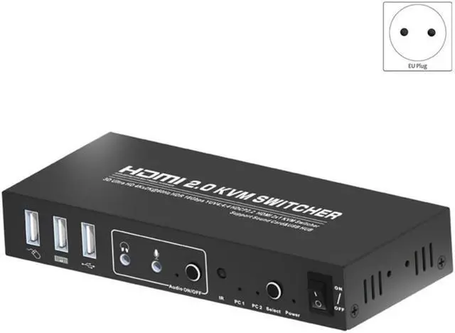 HDMI KVM Switch 4K@60Hz USB 2.0 HDMI 2 Port USB KVM Switch Box Wireless Keyboard and Mouse EU Plug