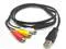 1 x USB female connector; 1 x male RCA video, 2 x male RCA audio