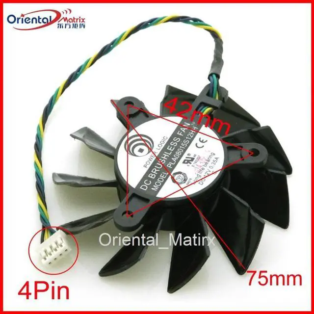PLA08015S12HH 12V 0.35A 75mm 42x42x42mm MSI R7770 R7750 Graphics Card Cooling Fan 4Pin 4Wire