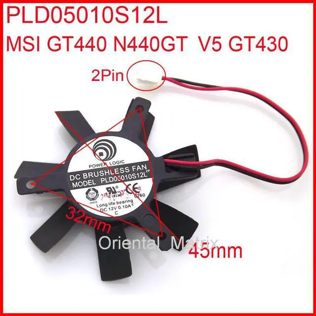 PLD05010S12L 12V 0.10A 45mm 32x32x32mm 2Pin For MSI GT440 N440GT V5 GT430 Graphics Card Cooling Fan