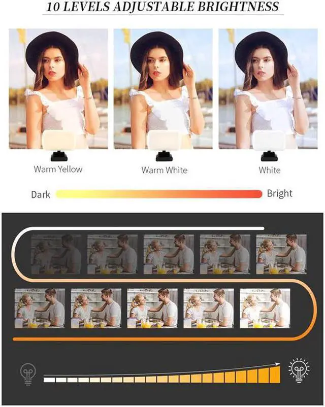 [ADJUSTMENT OF 10-LEVEL BRIGHTNESS]Stepless dimming from 10% to 100% with 10-level brightness and 3 lighting tones 3000K-6500K. ly adjust the light for meetings to brighten up your beauty and confidence with a better lighting experience.