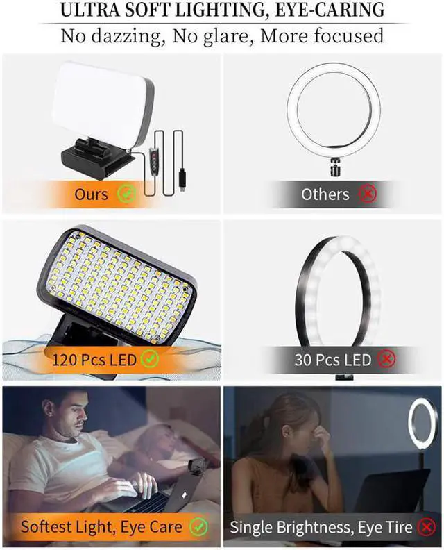 [BRIGHTER AND SOFTER]Our video conference lighting kit is upgraded with 120 eye-caring LED lamp beads with softer lighting design and 10-level 9W brightness, enhancing your professional glow without glare, shadow or dazzling.