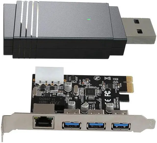 1 pcs 1300M USB WiFi Adapter & 1 pcs PCIE Riser Card PCIE to USB3.0+RJ45 Adapter Card