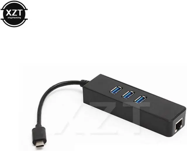 USB-C Hub USB 3.1 Type C to 3 ports USB 3.0 Hub with Gigabit 1000/100/10Mbps RJ45 External Wired Network Card Lan Adapter for Macbook Google Chrome Book