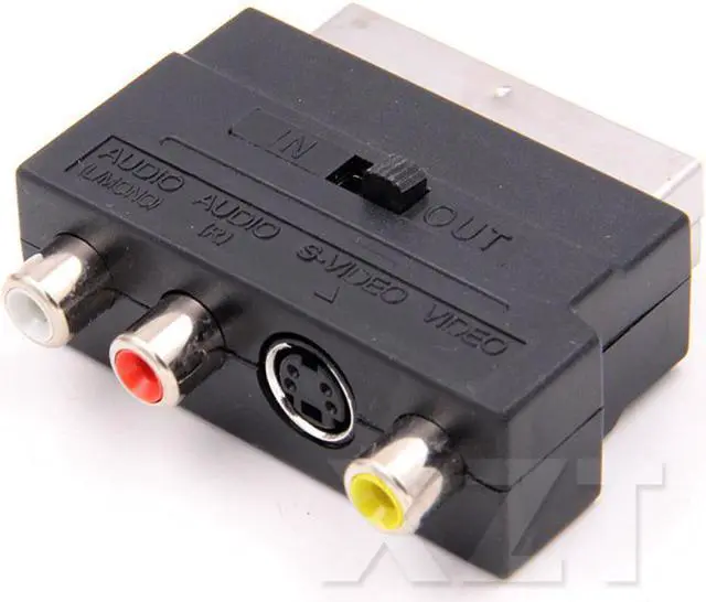 This SCART adapter features three color coded phono(RCA) sockets, an S-Video socket and select switch, this allows the adapter to be used for input or output of Audio/Video signals.