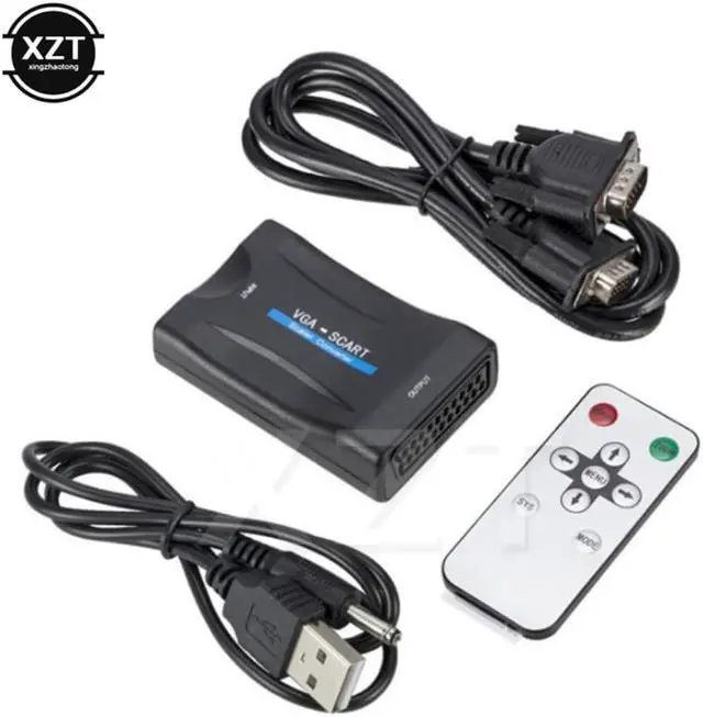 1080P VGA to SCART Video Audio Converter Adapter Conversor Digital for TV Signaling Adapter Connector With Remote Control