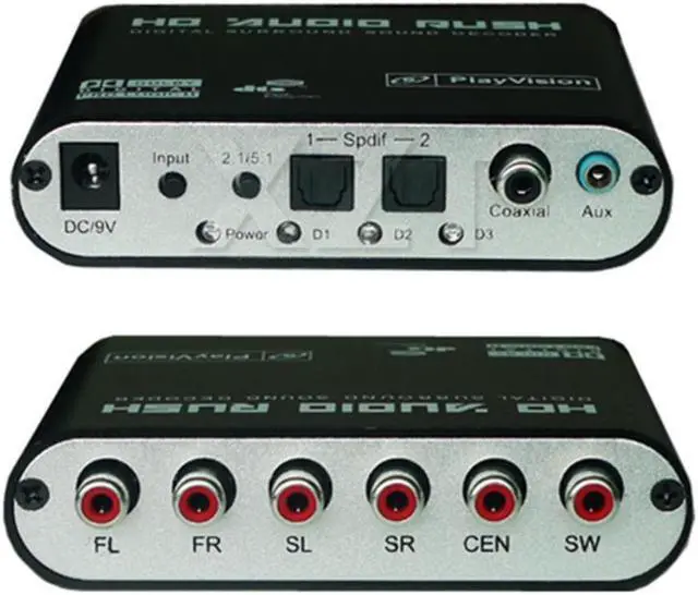 Used 24-bit audio DSP,96 KHz digital receivers,and 192 KHz or 24bit ADC and DAC.Support Dolby Digital AC-3 Dolby Pro Logic,DTS,PCM andother digital audio format source decode,a variety of sound field and the replay results of two listening modes,5.1 analog audio output ,will auto work with different amplifier and speakers to get different sound effects,easy to connect many entertainment devices which with optical and coaxial digital signal and analog output signals ,such as:set-top boxes,for HD players,for Blu-ray DVD,for PS2,for PS3,for XBOX360