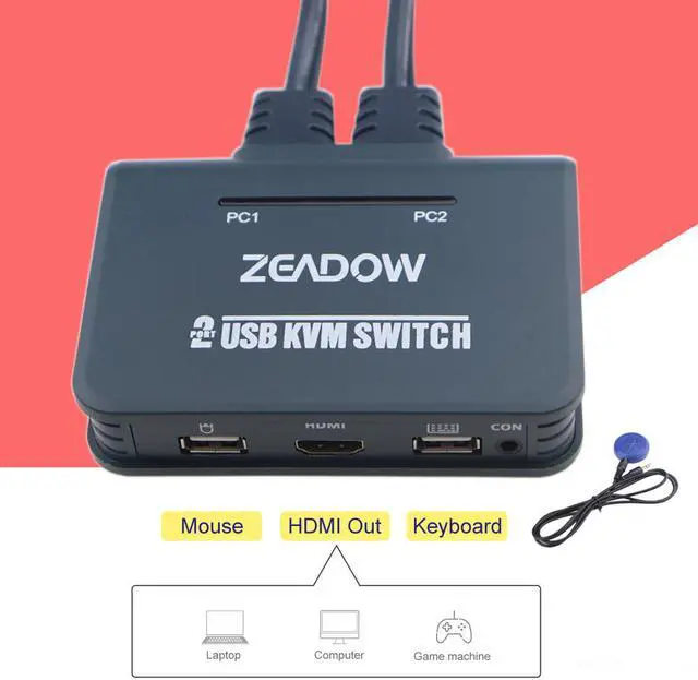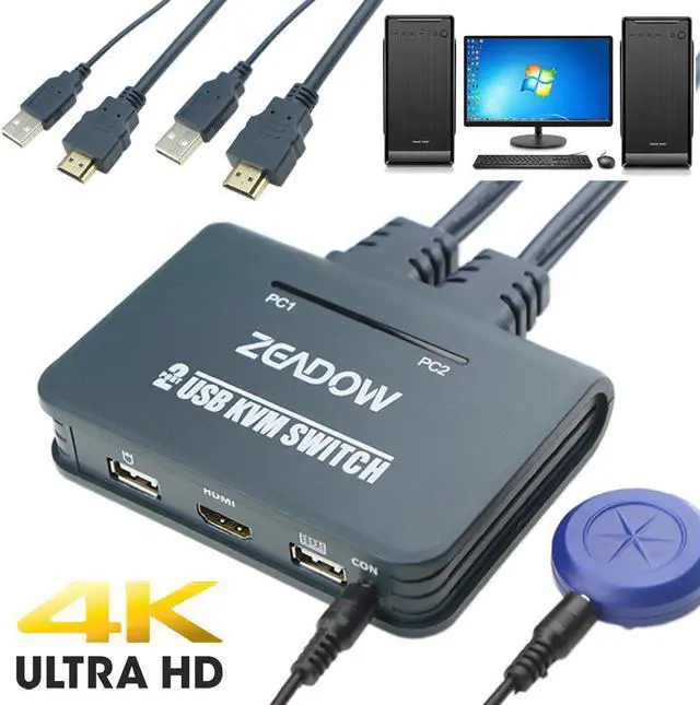 2 Ports HDMI KVM Switch Keyboard Mouse Splitter Box With HDMI & USB Cables Support 4K×2K@30Hz For Linux, Windows, Mac