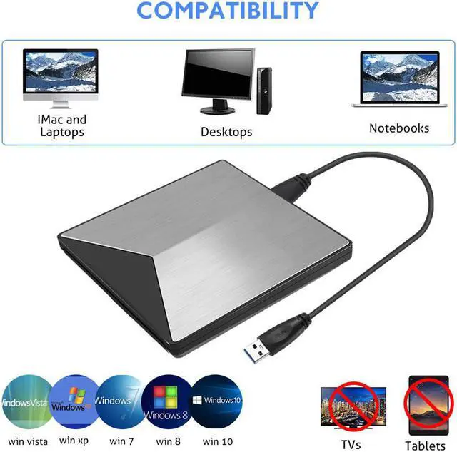 - Our cd drive supports Windows XP/7/8.1/10, Linux and Mac OS system.And it is designed for Apple/HP/Dell/Lenovo laptop,notebook,desktop and pc