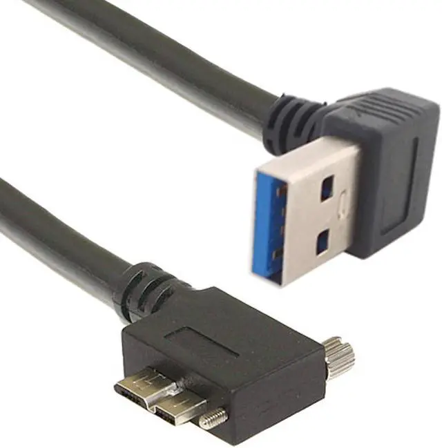 Down Direction Right Angled 90 Degree USB 3.0 A plug to Micro B Plug Left Angled locking screws Panel Cable