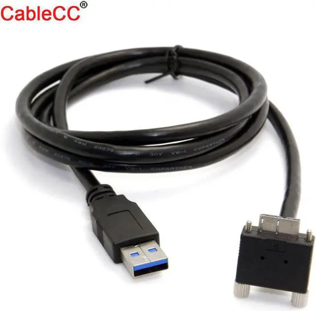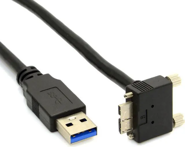 90 Degree Right Angled Micro USB Screw Mount to USB 3.0 A Type Data cable