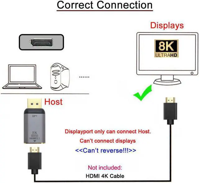 DP x HDMI adapter supports 8K@60Hz, 4K@60Hz for DisplayPort Enabled Desktops and Laptops to Connect to HDMI Displays, enjoy home theater with 8K/4K high resolution.