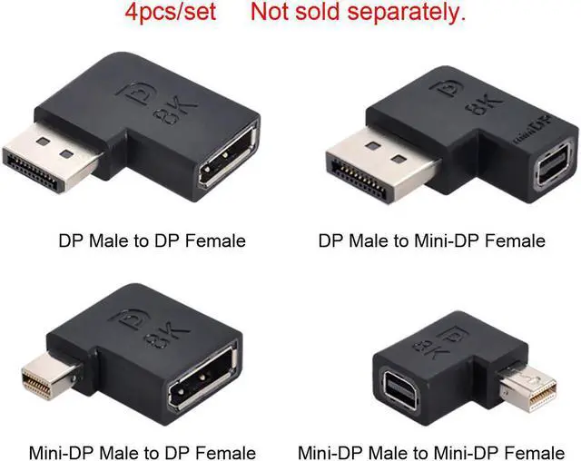 4pcs/set 90 degree Left Angled Mini DisplayPort 1.4 8K 60hz to DP Adapter Male Female Ultra-HD UHD for Video PC Laptop TV