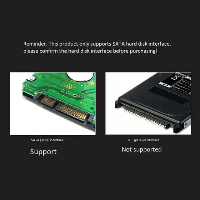 This product only supports SATA hard disk interface, please confirm the hard disk interface before purchasing!