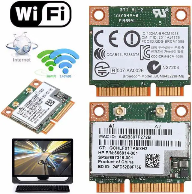 Dual Band 2.4+5G 300M 802.11A/B/G/N Wifi Bluetooth 4.0 Wireless Half Mini Pci-E Card For Hp Bcm943228Hmb Sps 718451-001