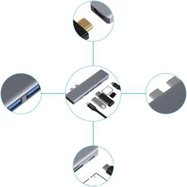 USB 3.1 Type-C Hub to HDMI-COMPatible 4K Thunderbolt 3 Adapter USB C Hub with Hub 3.0 TF SD Reader Slot PD