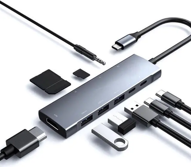 9 in 1 USB 3.0 Type C USB C HUB for PC Laptop Mac Pro Pro with HDMI-Compatible PD SD/TF Audio 3.5Mm Adapter
