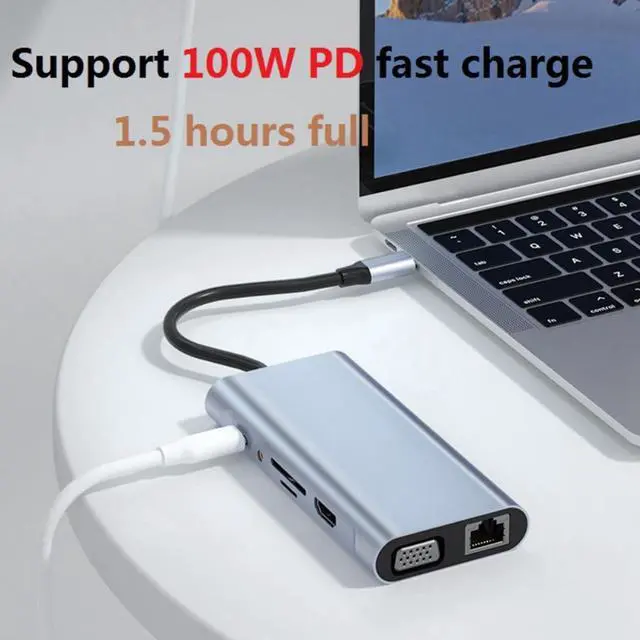 USB C Hub 11 in 1 TYPE-C Hub 100W Docking Station 4Kx2K@30Hz HDMI-Compatible USB3.0 PD Port Adapter for Pro/Air