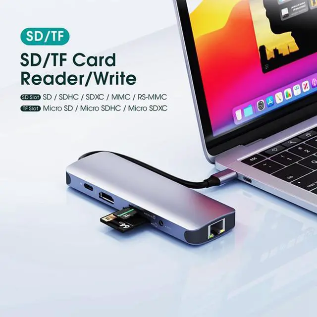9-In-1 Type-C Adapter with Gigabit Ethernet, HDMI-Compatible 4K Mac Adapter, 3 USB 3.0, SD/TF,Splitter for Laptop