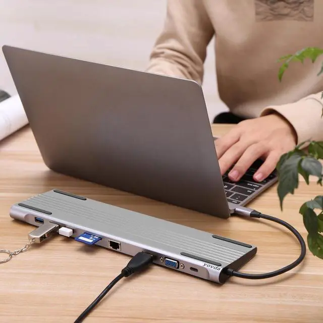 10-in-1 USB-C data hub splitter with 4K HDMI output port