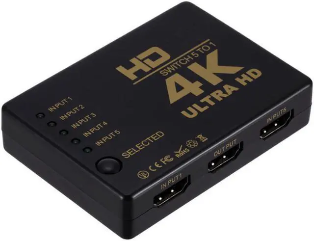 The HDMI5 port switch is a product that can switch multiple HDMI signals to a high-definition display device such as HDTV with a manual button. Optimized home theater system by avoiding frequent unplugging of cable plugs and cables.