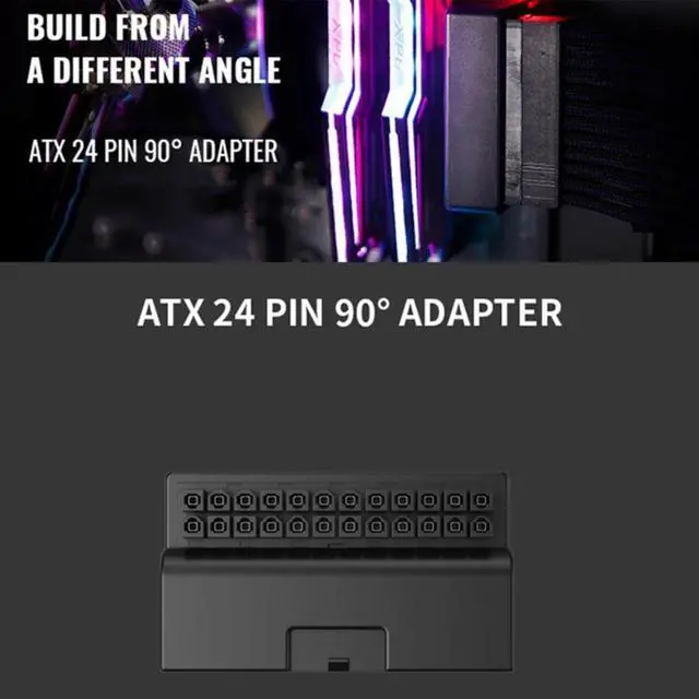 • Atx Power Supply 24P to 90 Degree Connector 24pin Steering Head for Computer Motherboard Wiring Cable Connection DIY