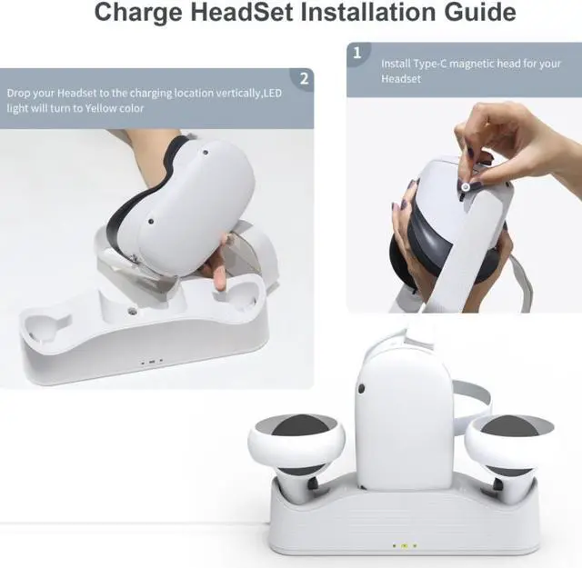 Intelligent chip protection, it takes about 3.5hrs to charge vr headset, 2.5h to fully charge controllers.