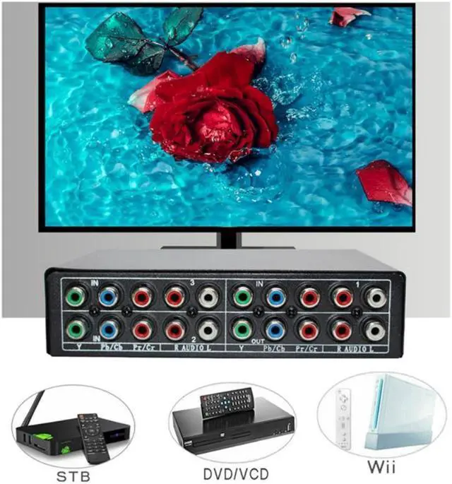RGB Component Switch Selector 5 RCA 3-Way YPBPR Cable Component Switch AV Switcher for PS2 Wii DVD Player TV