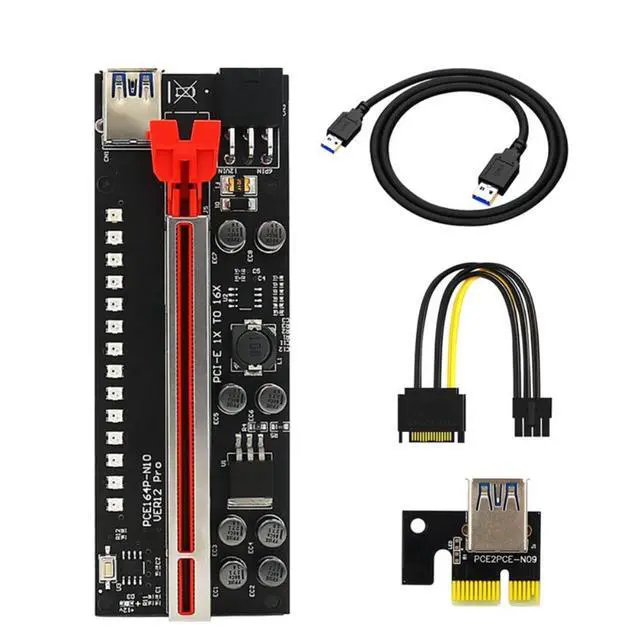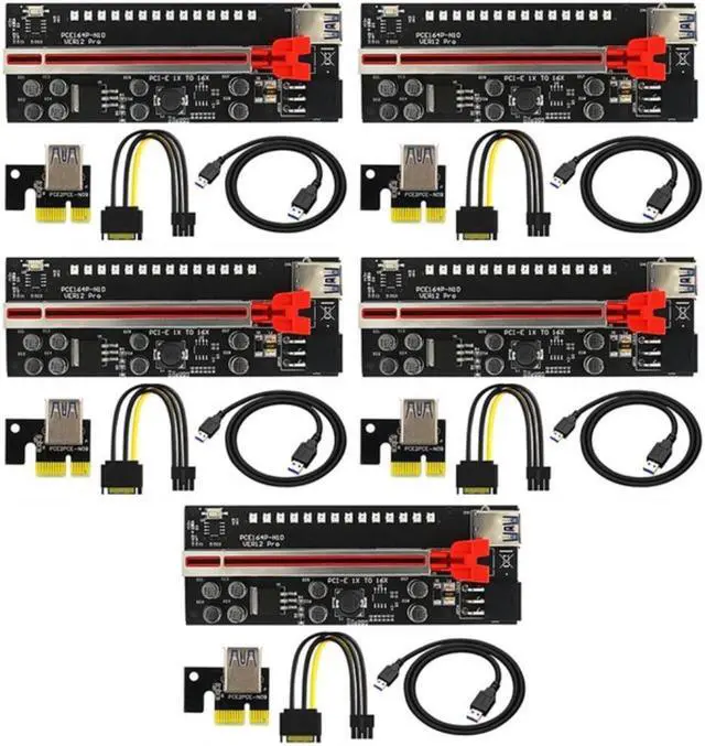 5Pcs Colorful Riser VER12 Pro PCI-E PCIE PCI Express Card GPU 1X X16 6Pin SATA Adapter Cable Mining Riser for Video Card