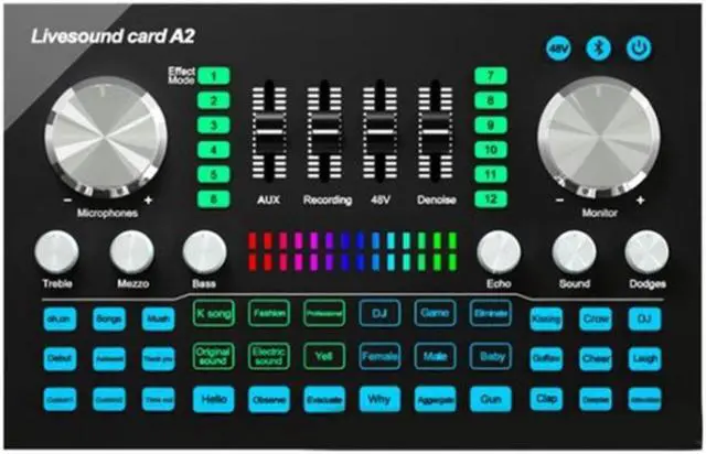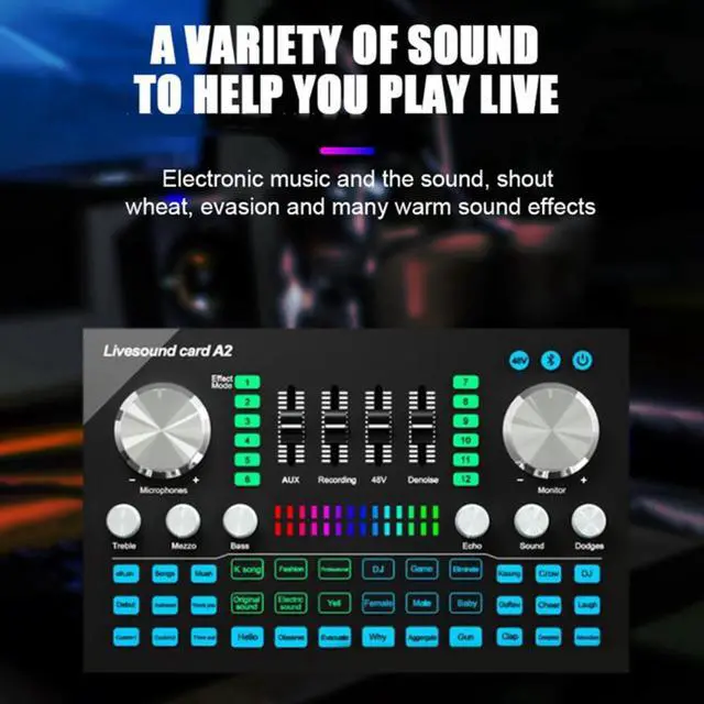 A2 Live Sound Card Portable Bluetooth Sound Card Profession Adjustable Volume Audio for Music Recording Karaoke Singing