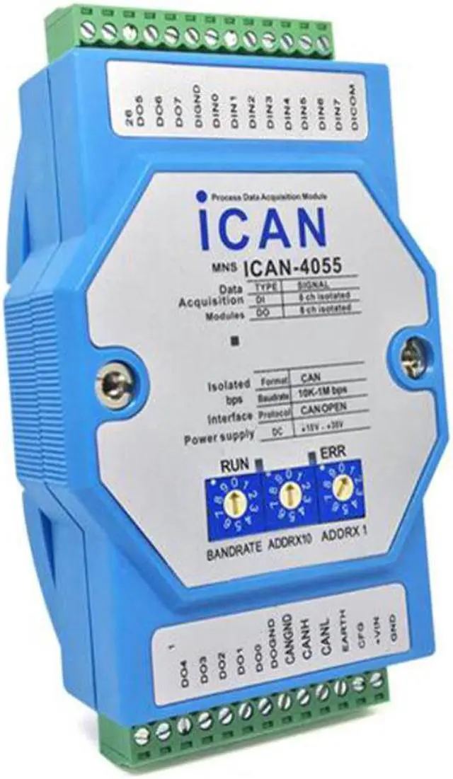 1. ICAN is a data acquisition module based on CAN isolation communication interface. The ICAN series modules integrate analog and digital input and output, data processing and communication functions in a single device. Using Canopen protocol.