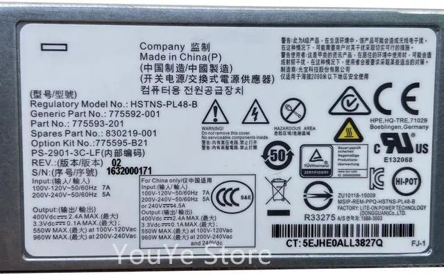 • For HP DL20 160 G9 900W Power Supply 775595-B21 775592-001 775593-002 830219-001 HSTNS-PL48 B Fast ship