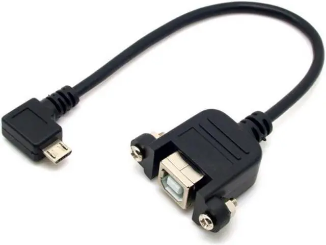 90 Degree Left Angled Micro USB 5pin Male to USB B Female Panel Mount Type Cable 20cm with Screws
