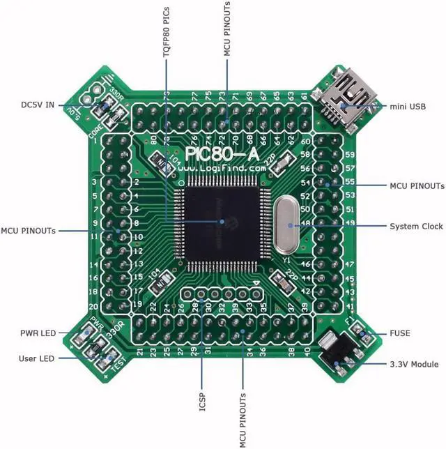 • DsPIC Microcontroller Learning Development Board Core Board PIC80-A with DsPIC33FJ64GS608