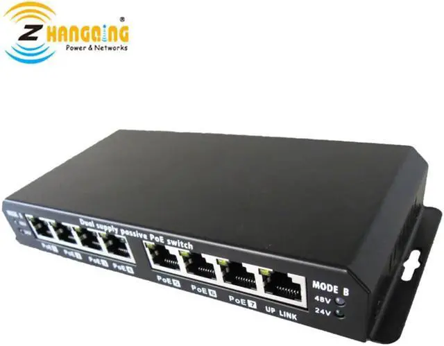 The ZQ-POES-8-7 Power Source Convenient switch combines an small-high efficiency 8-port 10/100 Mbps switch with 7 PoE port .