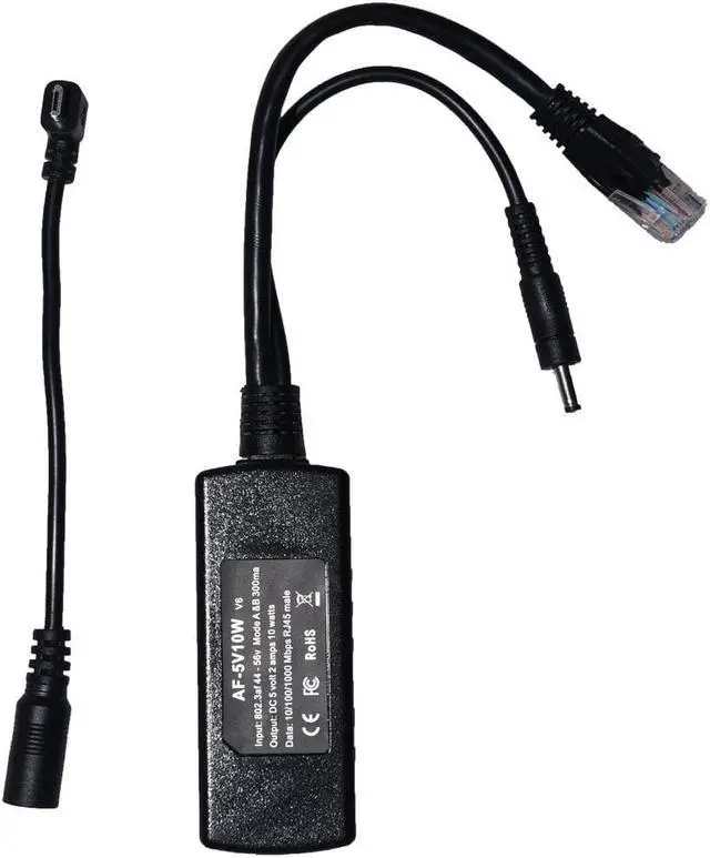 5V 10W PoE Splitter with Micro USB cable for 5V device, charging for