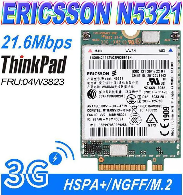 • Ericsson N5321 Mobile Broadband HSPA+ NGFF M.2 04W3822 04W3823 x1 carbon X230s X240S t431s T440 S540 W540 3G Module WWAN CARD