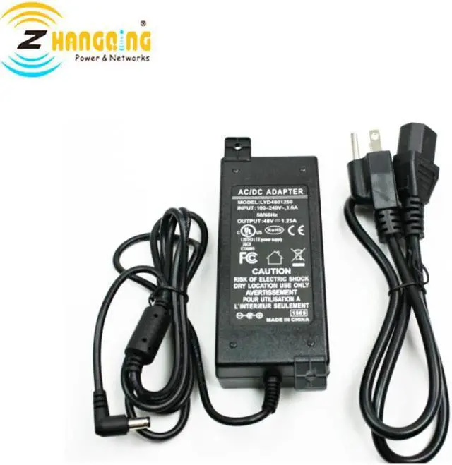 Rj45 sockets is form Switch/PC/HUB 1/2&3/6&4/5&7/8 are transmitting data. The POE Rj45(power+data) socket is to deliver data and power . Pin 1/2 & 3/6 & 4/5 & 7/8 transmitting data, Pin 1/2(-)&3/6(+)for power. Passive PoE is composed of 4 set of Rj45 sockets and one 60V DC power jack.Input power requests 90W or more Ac To Dc Power converter.The input dc hole diameter is 2.1mm and the other end OD id is 5.5mm.