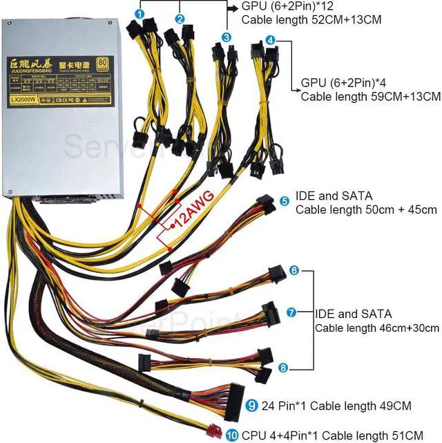 8*12AWG wires provide sufficient materials for 8 graphics card.