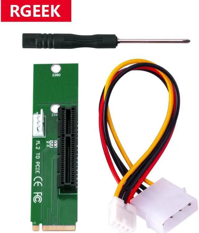 NGFF M.2 Key Male to PCI Express PCI-E 4X Female Converter Card Adapter with Power Cable Allows users to use standard PCI-e 1x/4x card in an M.2 NGFF M key slot in the Desktop or Laptop.