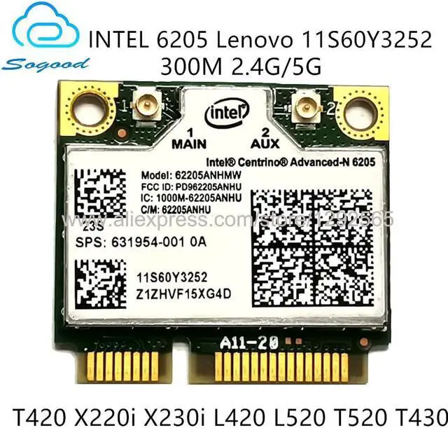 62205ANHMW 60Y3252 11S60Y3252 for Lenovo Thinkpad T420 X220i X230i L420 L520 T520 W520 T430 Wireless Card INTEL Advanced-N 6205