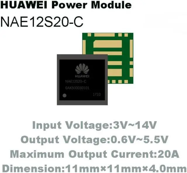 NAE12S20-C is a package level (PSiP) DC-DC power module, the input voltage range is 3V~14V, the maximum output current is 20A, and the output voltage can be adjusted within the range of 0.6V~5.5V Festival.