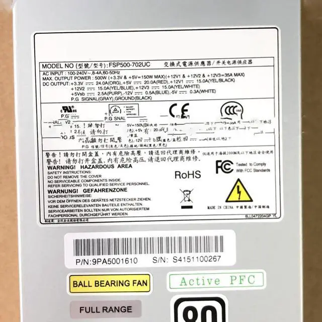 FSP500-702UC is an industrial level of switching power supply. The power supply comes to offer the total power capacity up to 500 Watts, and uses unique active PFC (Power Factor Correction) circuit design with its high-load electrical components, makes it to be perfectly used in an industrial environment. In addition, with its full range of input and output electrical features, the power supply is ideally the best choice for server, workstation, communication or any other automation applications to use. The product also complies with the latest safety and EMC standards, which is perfectly to meet various regulations worldwide.