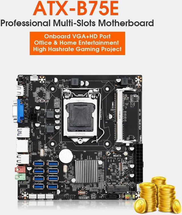 ATX-B75E Mining motherboard LGA1155 miner rig support 8 USB3.0 port for mining Ethereum Bitcoin Riserless Mining Expert