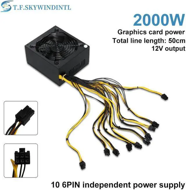. 2000W Mining Power Supply 160V-240V ETH Bitcoin Mining Power Supply Support 6 GPU Card For Mining Antminer Rig