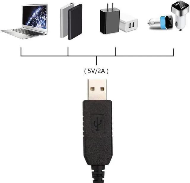 USB input: 5V 2A male, Please Make Sure the current is 2A or the device may not work.Note: NOT Suitable for High Current Equipment