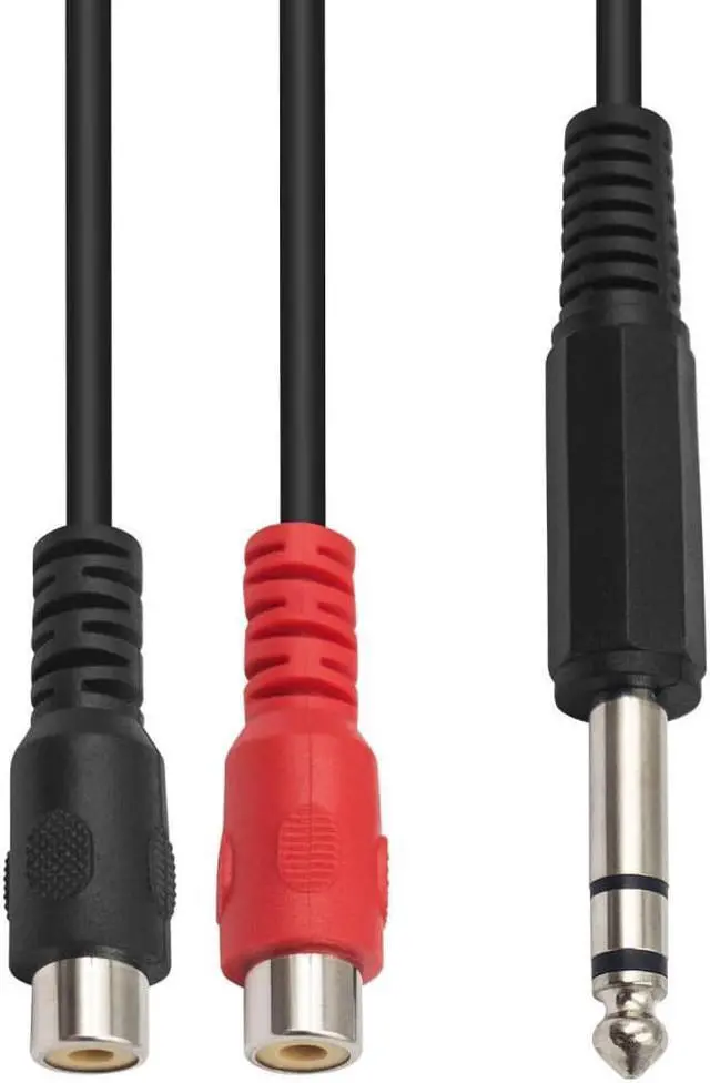 RCA to 1/4 inch cables allow you to interface between 6.3mm Stereo and 2-RCA, so you can connect between speakers and audio devices that don't both have the same connection types.