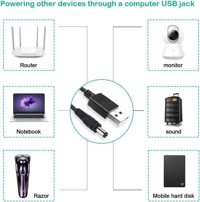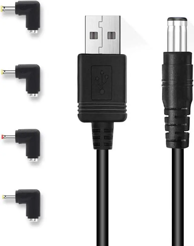 Connectors: USB Type-A Male to 5.5x2.1mm Barrel Male, with 4 connectors: 2.5x0.7mm3.5x1.35mm, 4.0x1.7mm, 5.5x2.5mmcan satisfy the charging demand for most different devices of home travel or office. Easy to use, plug and play, safe and convenient.