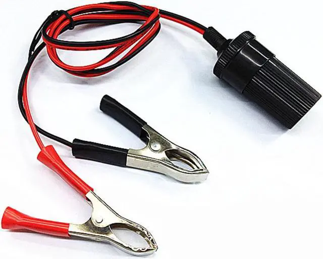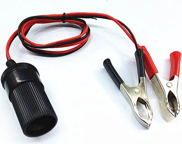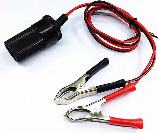 Clip on 12 volt cigarette lighter style accessory socket . Has 2 color coded aligator clips that attach to the 2 terminals on your for instant power for your 12V that require a ciggarete style outlet. Made with 50CM of 18 gauge wire Perfect for boat, RV , automobile, ATV tractor.....anywhere you need an extra 12 V socket.